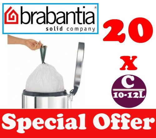 Sales Rank: #1793969 in Kitchen & Home Appliances . Colour: white. Brand: Bargains Hut. Features 20 x 10-12L Litre Brabantia Bin Liners Waste Bags Sacks Type C 2.2-2.6 UK Gal.. Easy to insert neatly and to remove quickly.. The unique colour coding enables you to find the right bin liner.. Provided with special ventilation holes which makes it easier to insert the waste bag.. Made of extra-strong quality plastic (HDPE)..